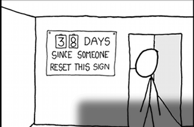 Inspired by an XKCD comic I once read, I built a sign that measures how long it's been since someone hit the "reset" button.